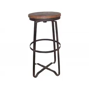 Ce tabouret de bar au style industriel allie une assise en bois de pin naturel vieilli et une structure en métal noir martelé. Réglable en hauteur, il s’adapte parfaitement aux bars et cuisines modernes. Le bois, matériau vivant avec des irrégularités naturelles, lui confère charme et authenticité. Dimensions : H72 x L45 x P45 cm.