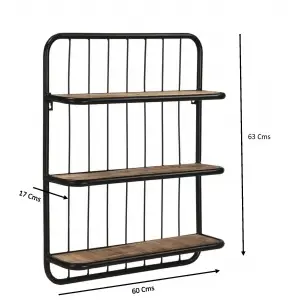 Étagère murale bois et fer, 3 étagères, style industriel, 60 cm