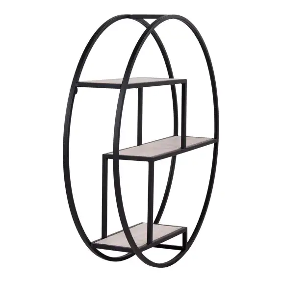 Étagère Rotterdam – Étagère ronde avec cadre noir et bois naturel