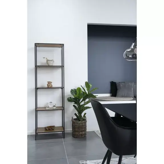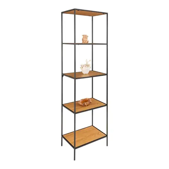 Étagère avec cadre noir et 5 étagères aspect chêne 51x36x170 cm