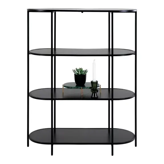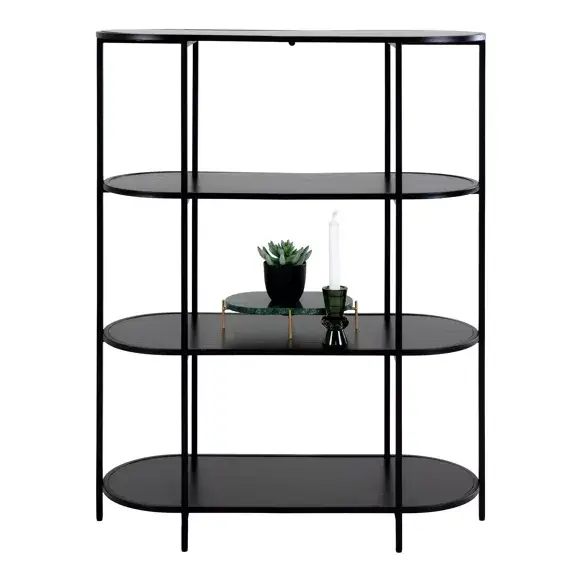 Etagère ovale, 4 étagères, noir, cadre noir 85x36x111 cm