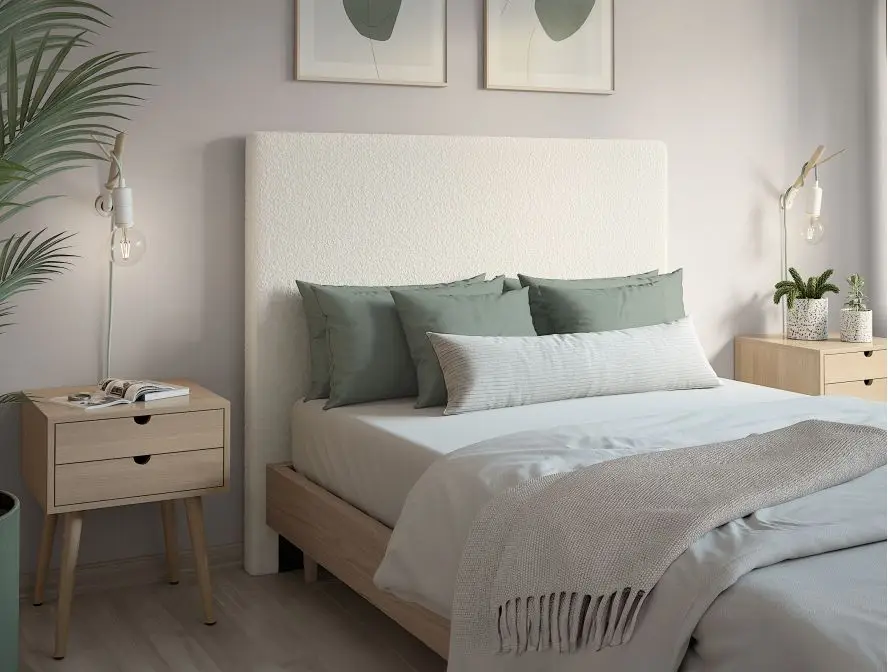 LAUREL Tête de lit en tissu bouclettes BLANC largeur 160 cm