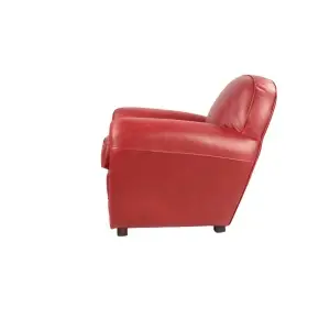 Fauteuil Club en cuir rouge, design indémodable, dossier rond